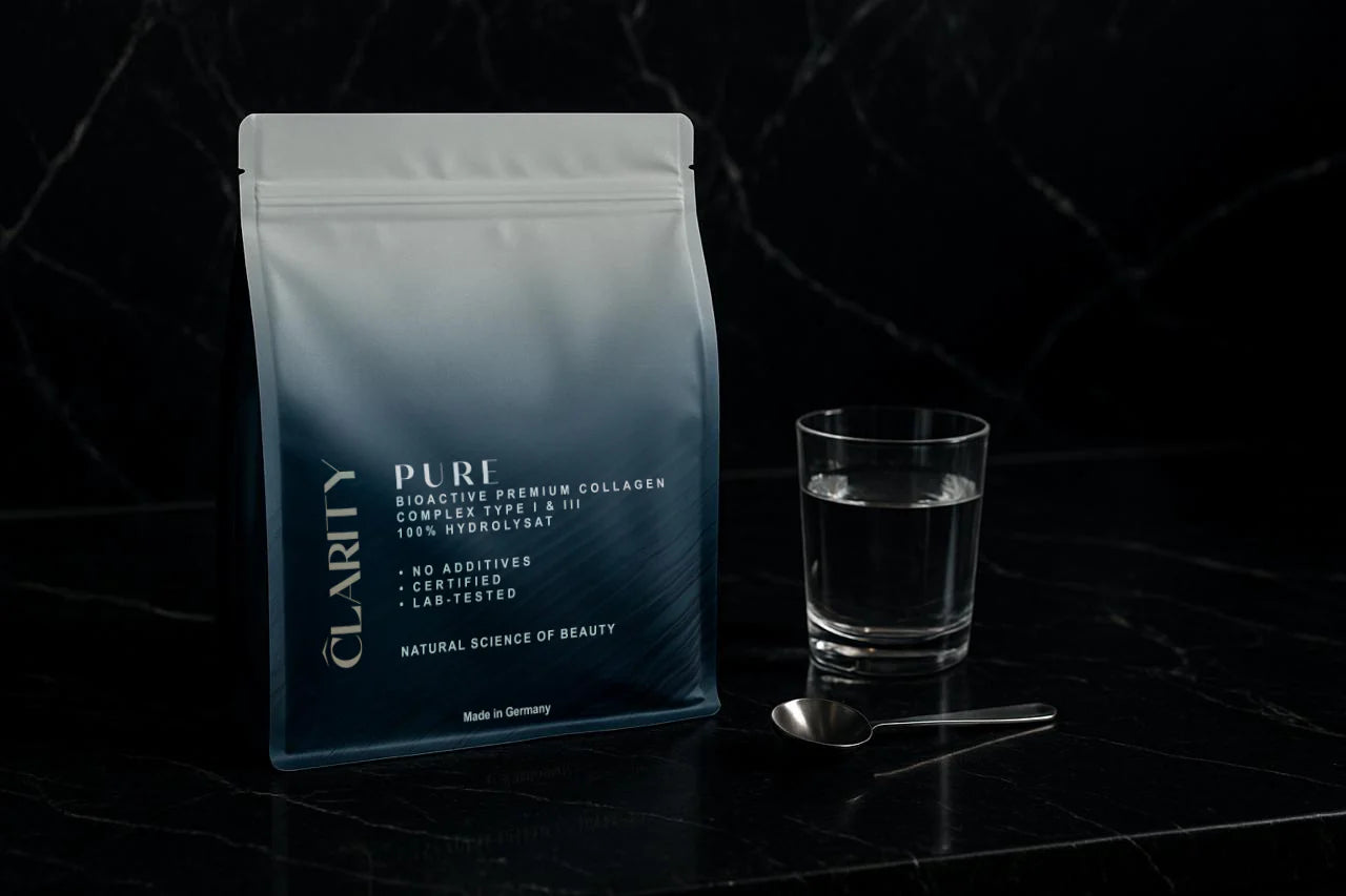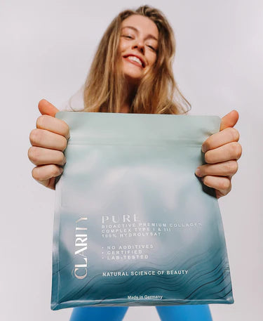 Właśnie dlatego powstało CLARITY – dostarczamy bioaktywny kolagen w formie, która jest szczególnie dobrze przyswajalna przez organizm, pomagając uzupełnić to, czego ciało samo już nie wytwarza w wystarczającej ilości.